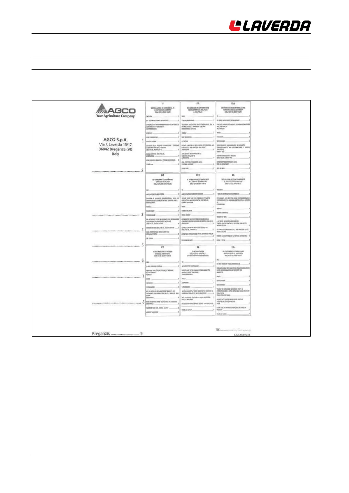 Laverda M300 MCS - Conformity; EC Declaration of Conformity