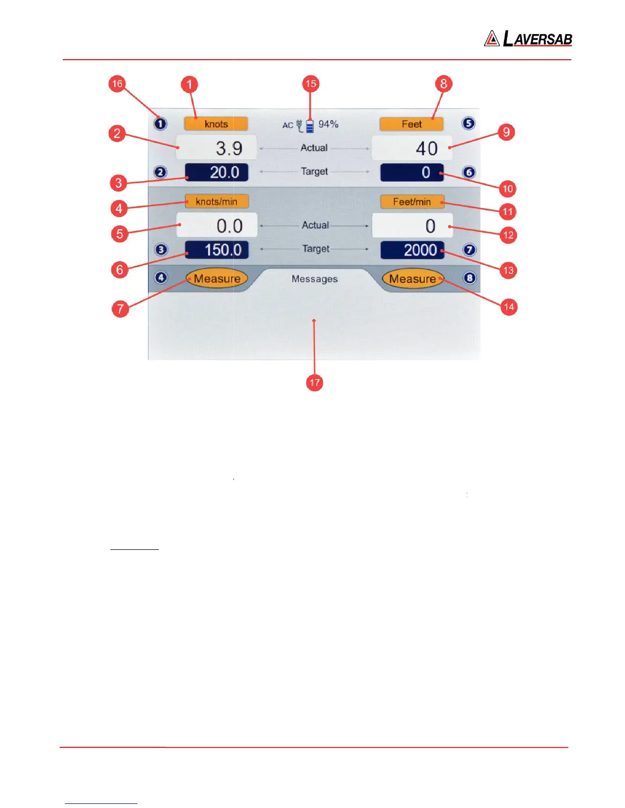 ). Number 17 points to the ‘Messages’ section of the screen.