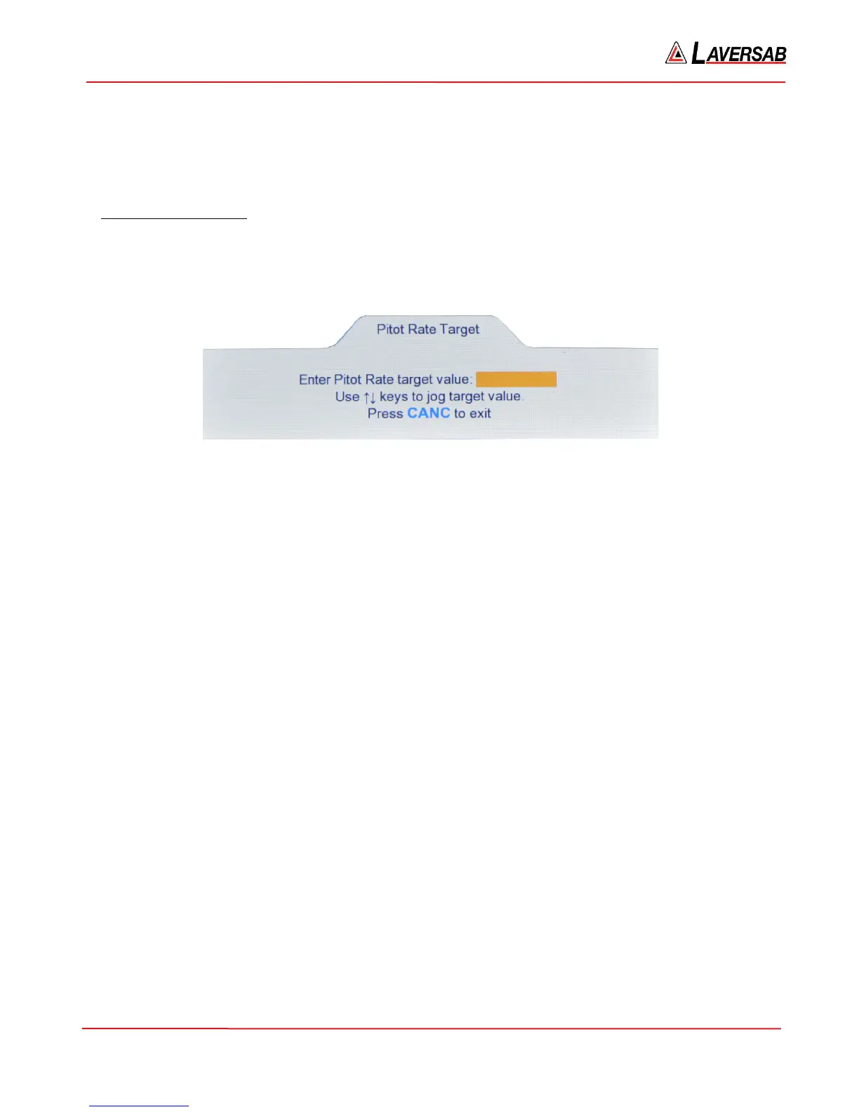 The Pitot Rate Target value can be changed only if the key# symbol (3) is displayed to the left of the Pitot