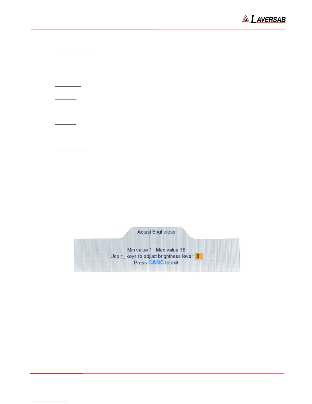 Use the Arrow keys to adjust the brightness. On power-up the brightness level is always set to 15.