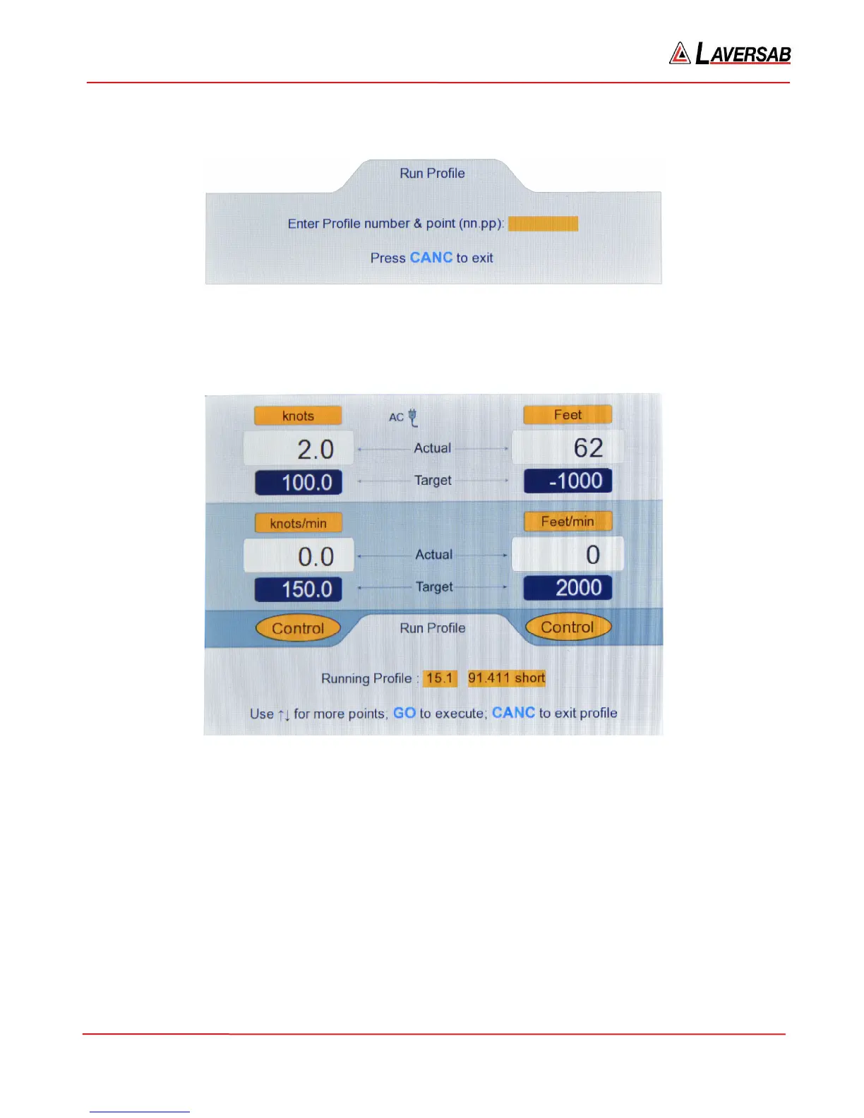 In the Lower section, the profile number (15.1) will be blinking (waiting for GO or CANC). The name of