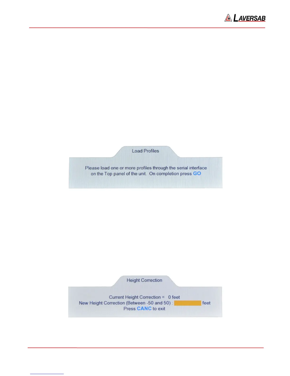 Note: The Height correction is always reset to zero on power-up.