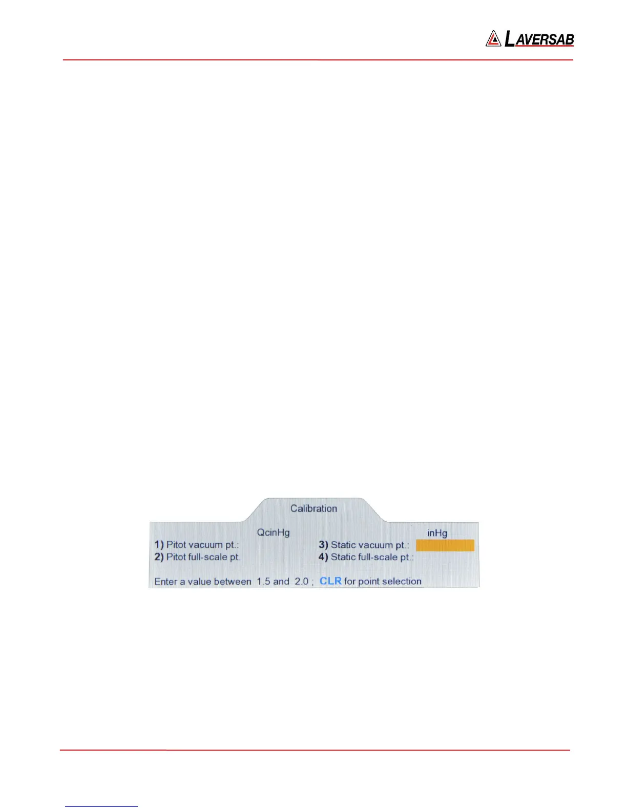 The calibration adjustment requires generating two differential pressures at the Pitot output and two