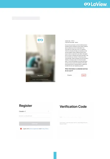 Step 1 Open the LaView App, click "Register", read the "Privacy Policy"