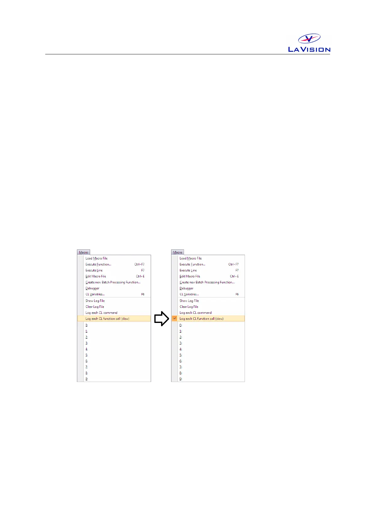 • Enable the Log each CL function call (slow) entry in the Macro