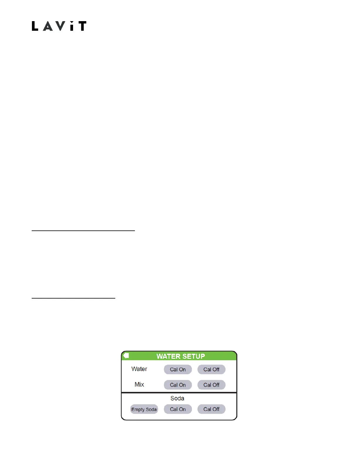 Dispenser, three water streams must be calibrated: mix, still, and sparkling. During the calibration
