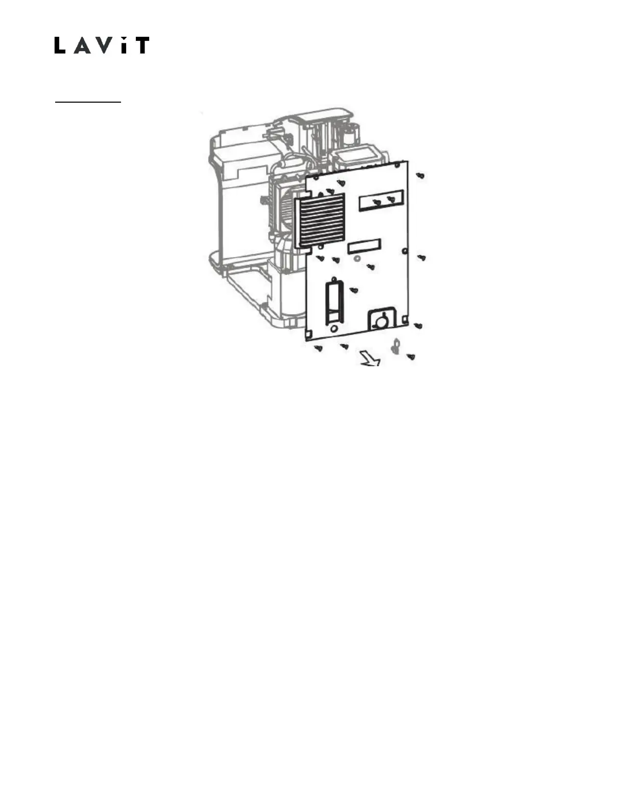 8. Remove the rear panel. The panel is pressed fitted onto the fan housing. Use enough