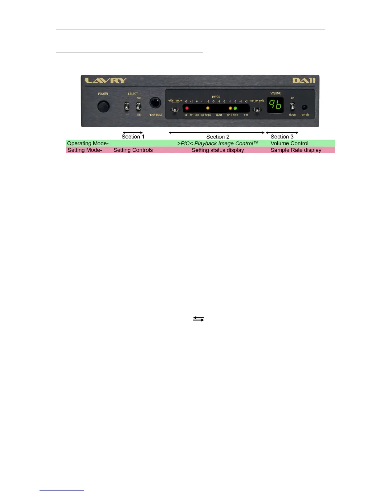 - In Operating mode, the front panel displays the status of the >PiC< Playback Image Control™