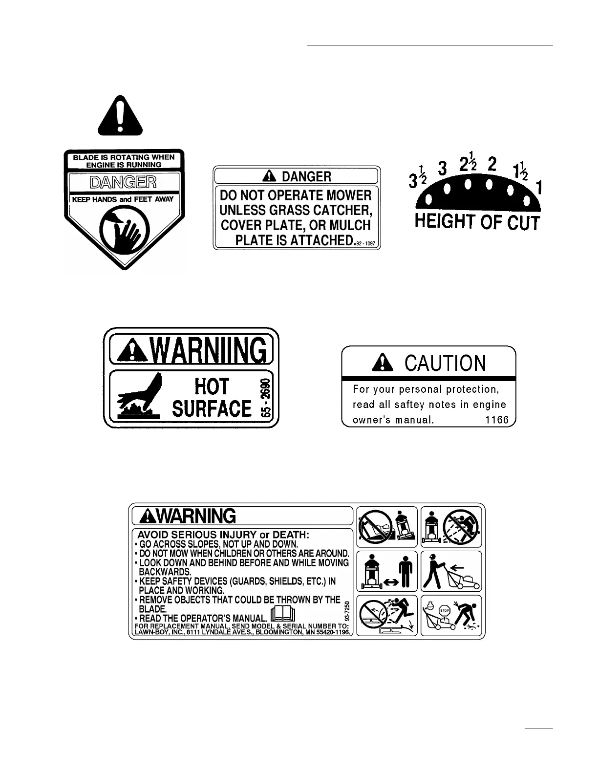 Les décalcomanies de sécurité et instructions sont facilement visibles par
