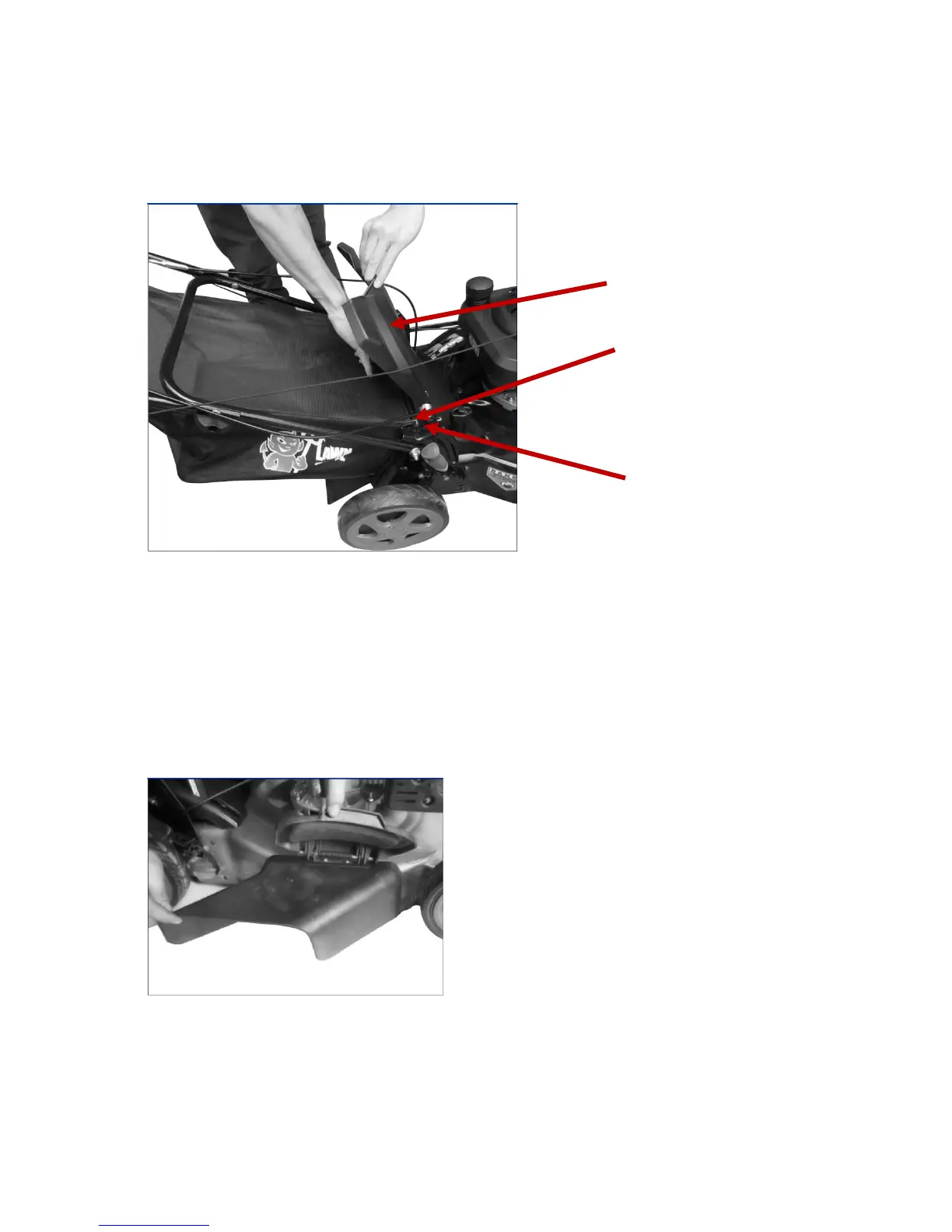 2. Install the Grass Bag, ensuring that the 2 grass bag pins rest in the Notches on