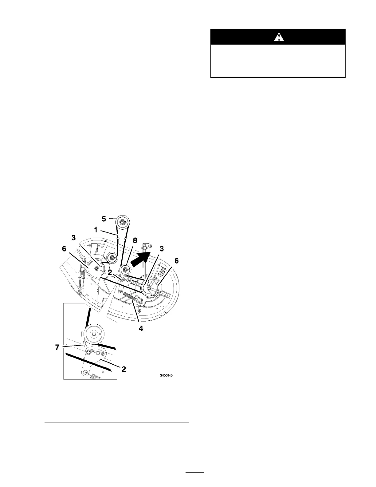 8. Install the mo w er belt onto the engine pulley;