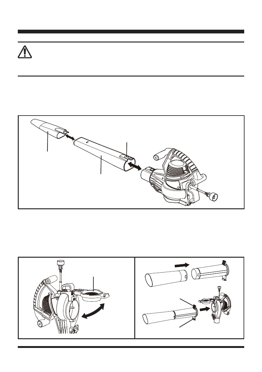1. Slide blower tube forward until the tab on the blower housing clicks into the slot on the tube.
