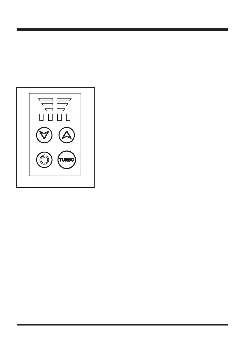Press and hold the turbo speed button to increase airow. After 15 seconds, the airow will return to its