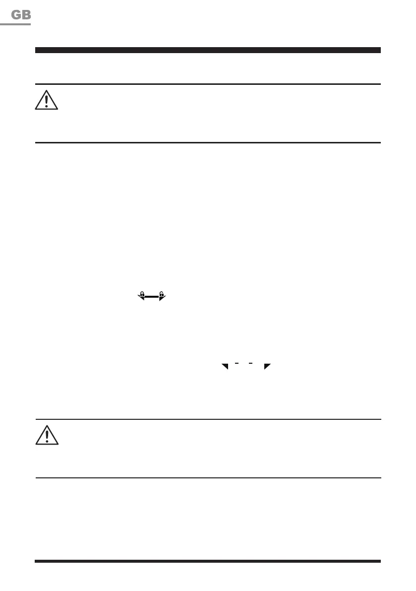 Always ensure that the angle adjustment button snaps into place! Only adjust to indicated angles.
