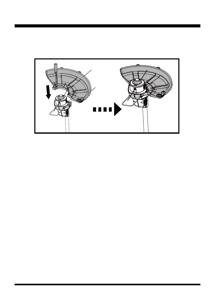 ■ Alignez le dispositif de sécurité sur la tête du coupe-herbe (13).