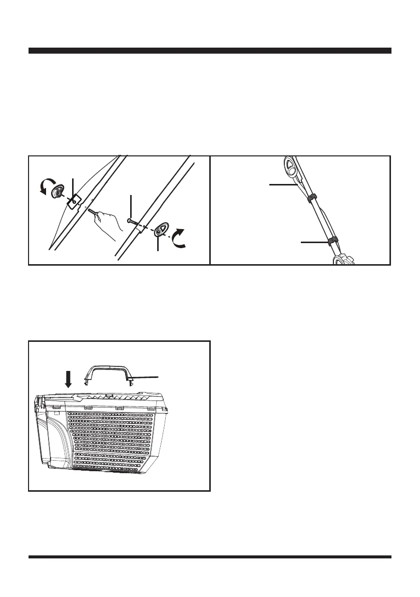 1. Fix the upper handle using the bolts, cable guide (pre-installed on cable) and the locking knobs, and turn