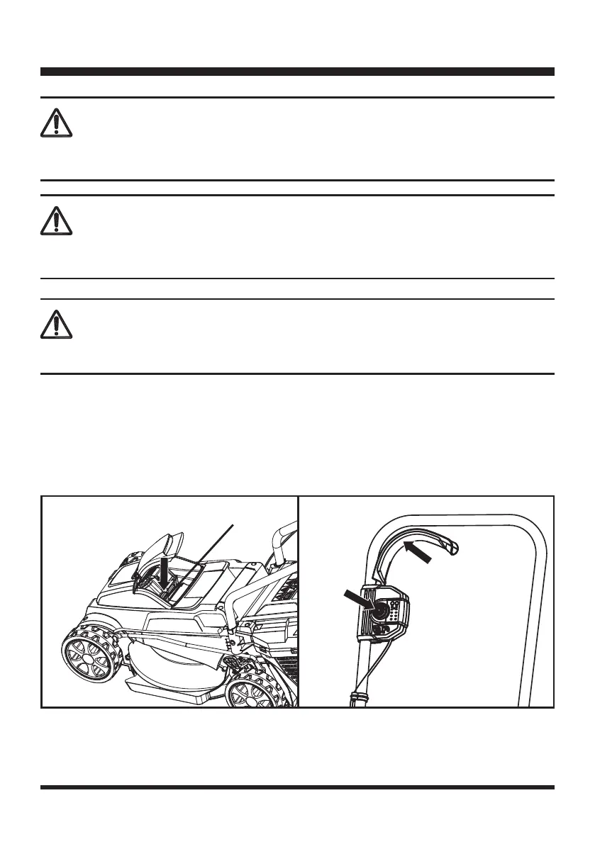 1. To switch on, insert the safety key, press, and hold the safety switch button and gently pull the start/