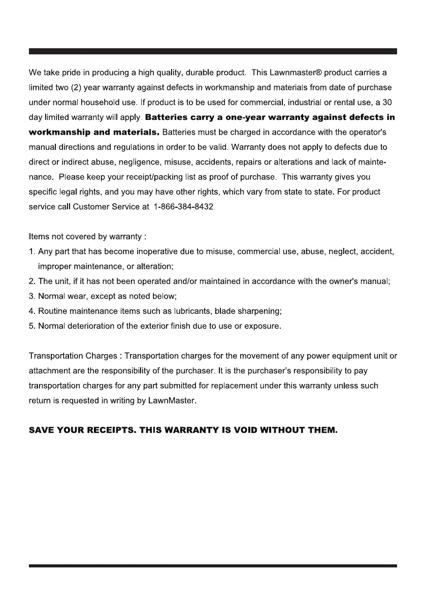 LawnMaster CLM2413A - Warranty Information; Warranty Coverage and Terms