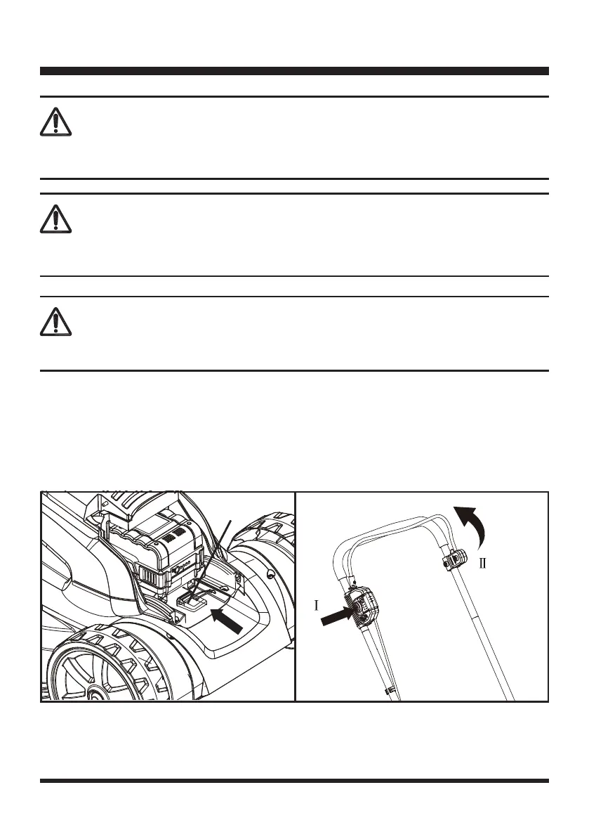 1. To switch on, insert the safety key, press and hold the safety switch button and gently pull the start/