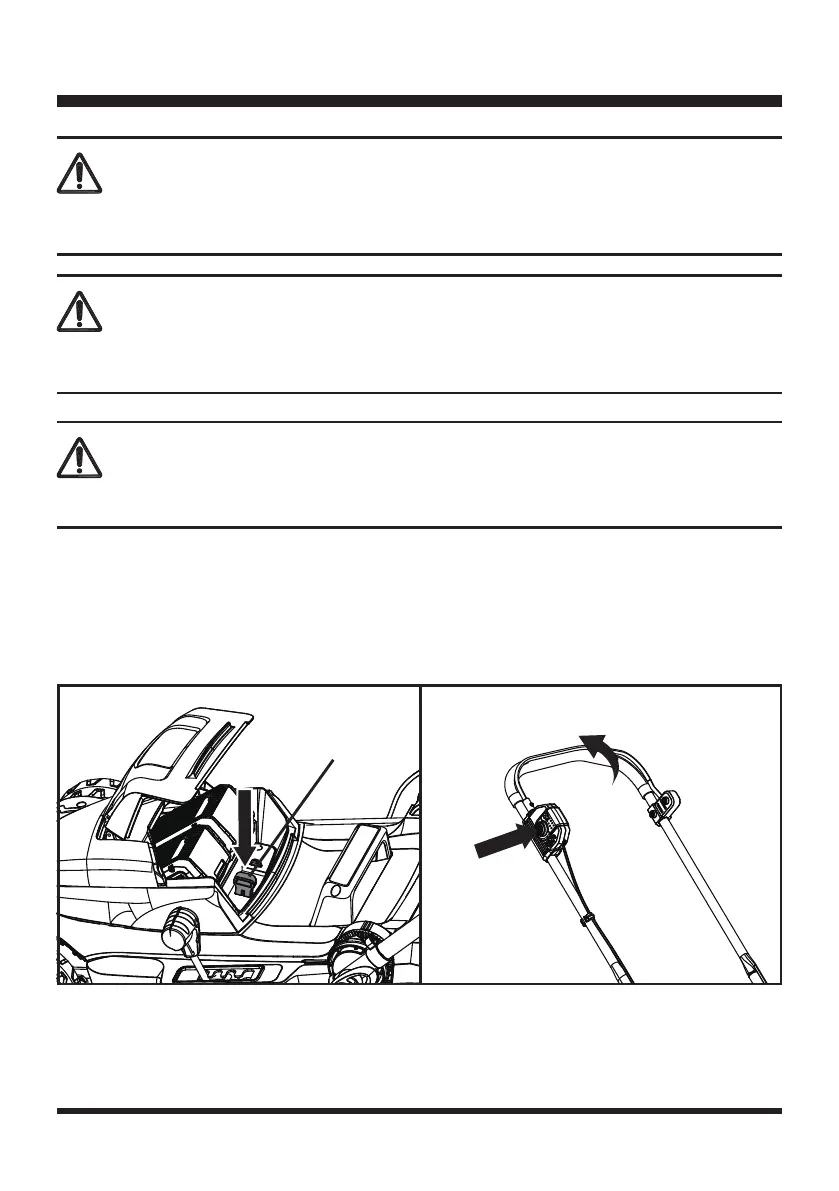 1. To switch on, insert the safety key, press and hold the safety switch button and gently pull the start/