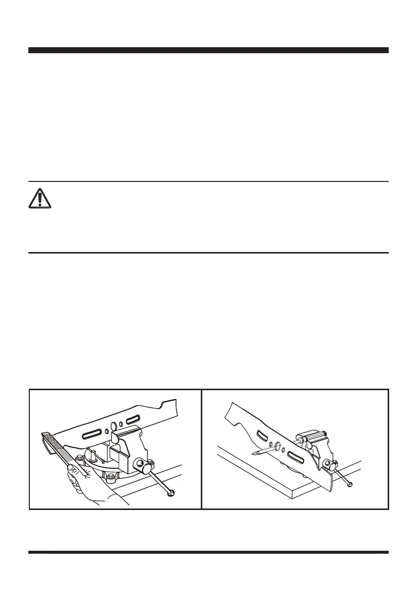 • Using a ne-tooth le or sharpening stone, sharpen cutting edges on both ends of the blade,