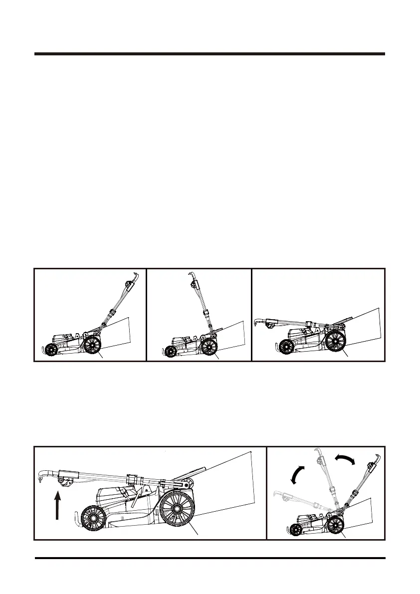 ■ Press and hold the locking levers (6) on both sides of handle bar with both your hands to release