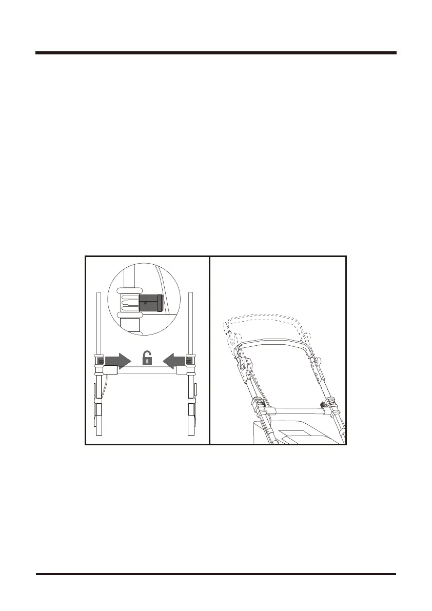 Unlock the locking clips on both sides of the handle bar, then push down the handle bar to the