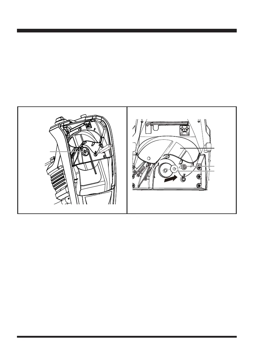 ■ Take out the hex key from the recess in the housing inside the chipper. Use the hex key to loosen