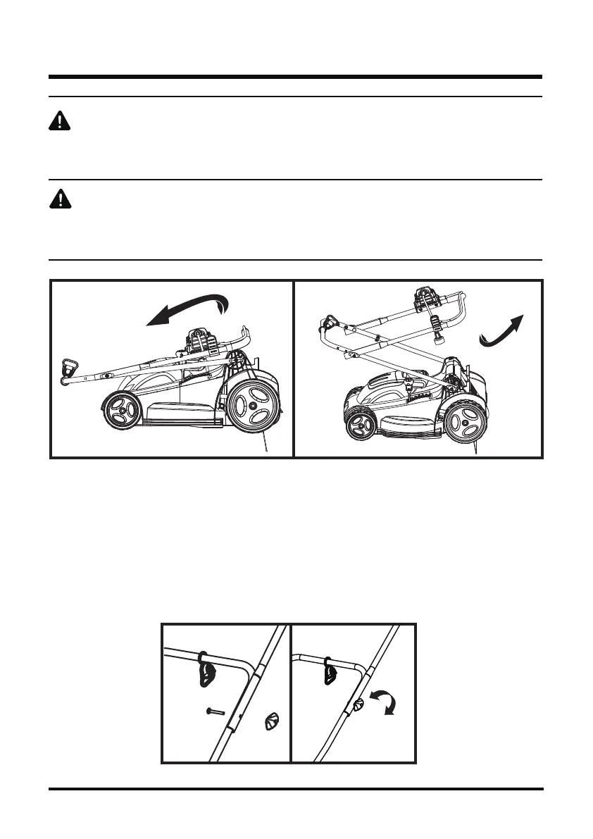 • Pull up and back on the lower handle and upper handle to raise the handles into operating position.