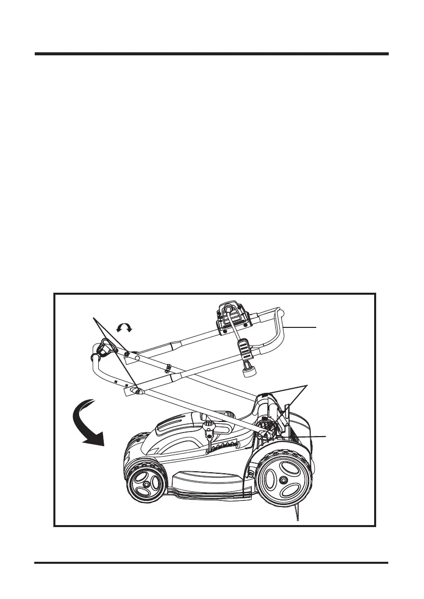 • Fold the lower handle forward, making sure not to bend or kink the power cord.
