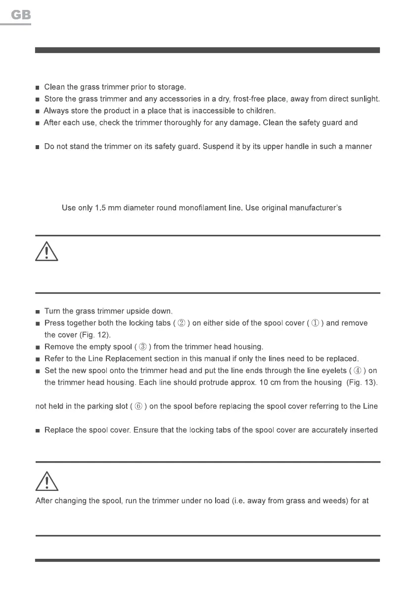 Before replacing the spool line, make sure the trimmer is switched off and unplugged. The line