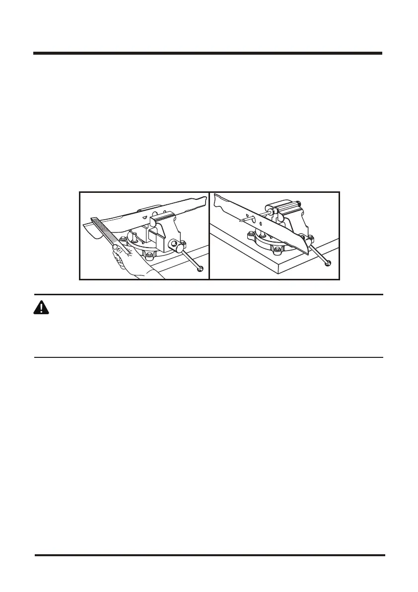 ■ Using a fine-tooth file or sharpening stone, sharpen cutting edges on both ends of the blade,