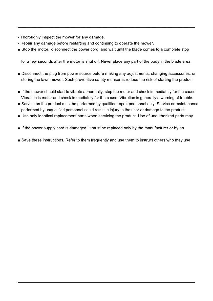 before removing the grass catcher or unclogging the chute. The cutting blade continues to rotate