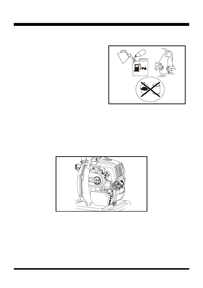 ■ Vierta cuidadosamente el combustible en el tanque, evitando derramarlo. Limpie y compruebe la