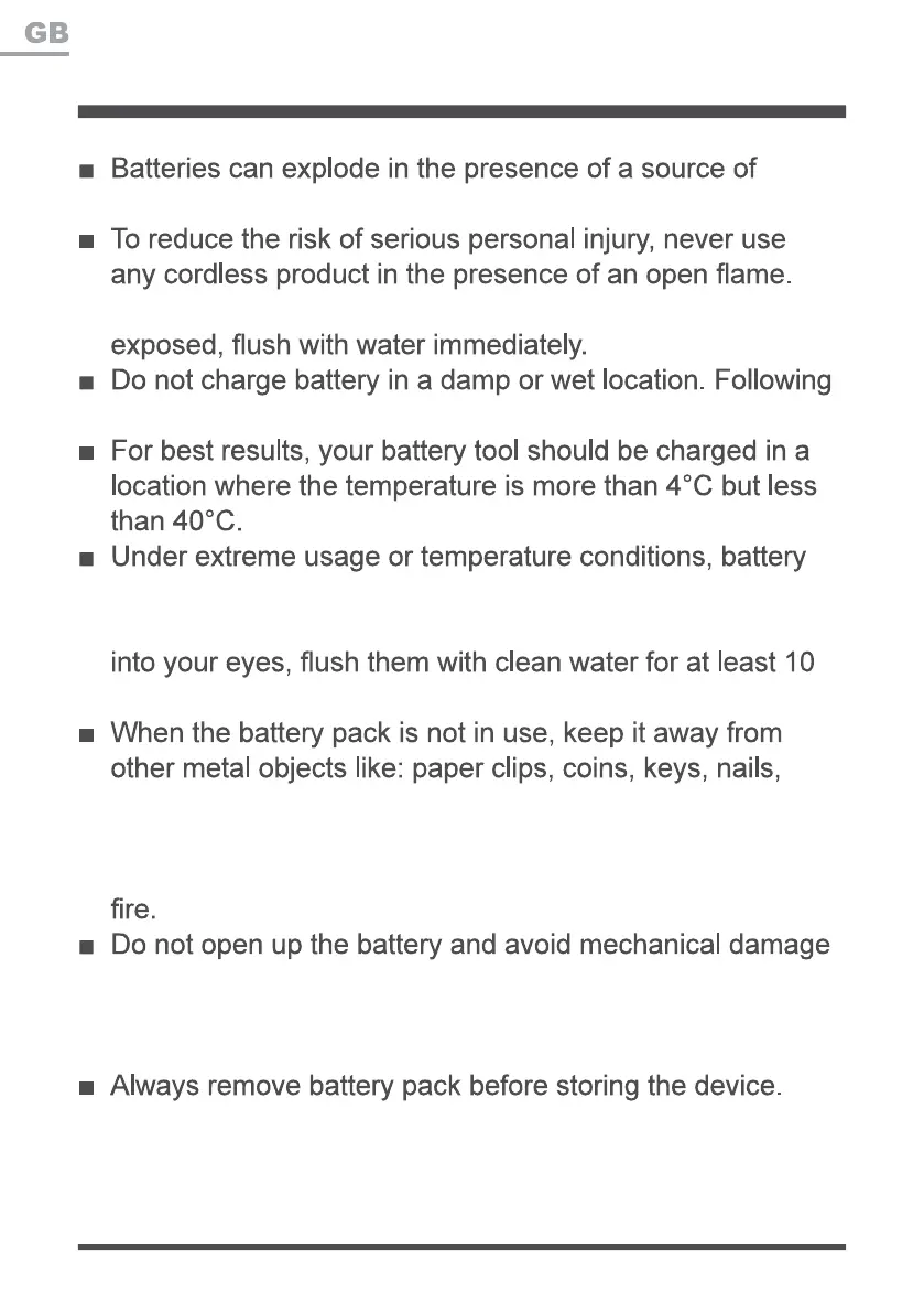 to the battery. Risk of short circuit and fumes may be