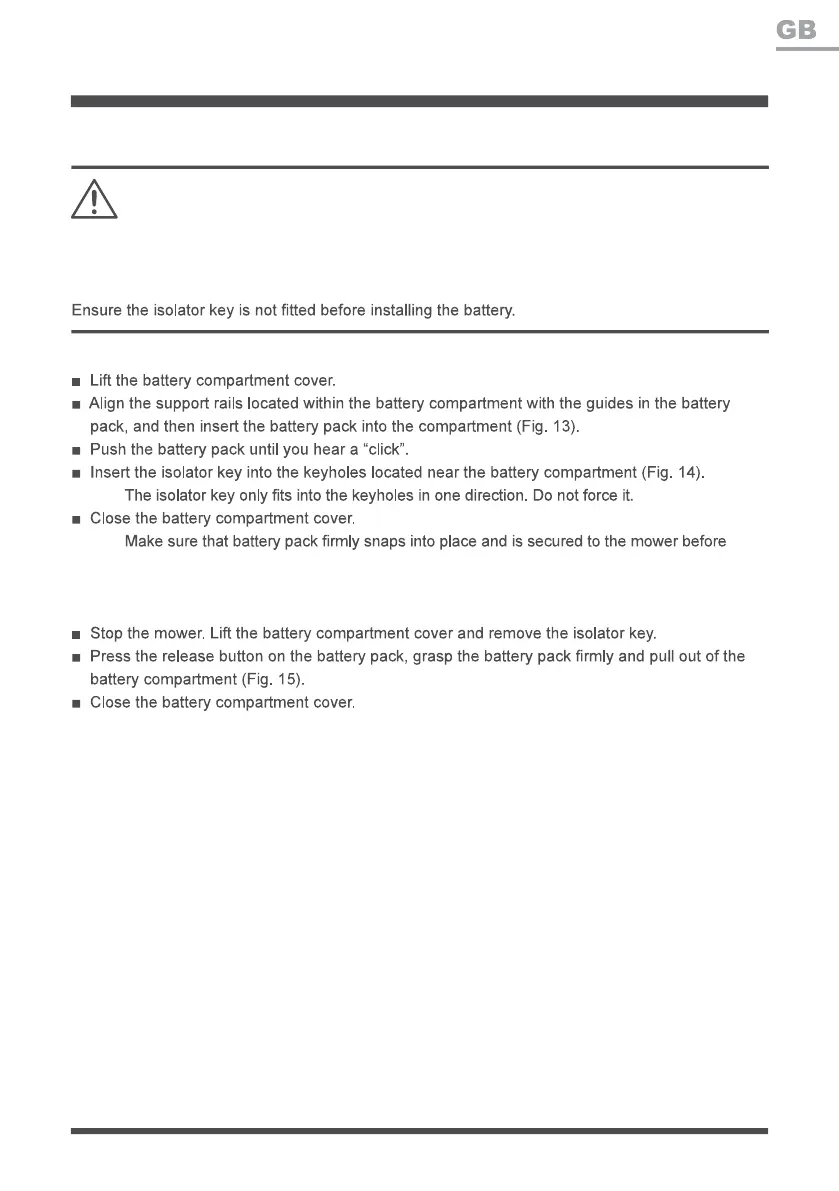 Install/Remove the Battery Pack (See Figs. 13-15)