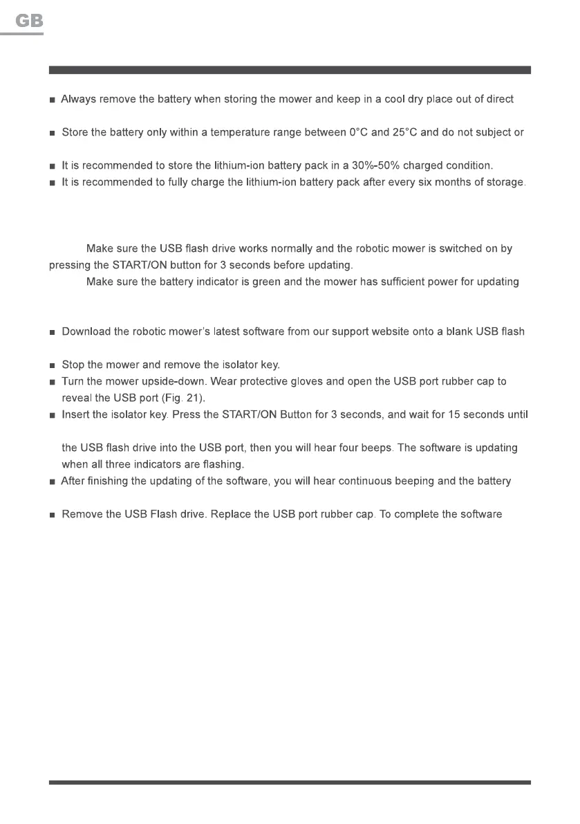 the robotic mower is powered on completely indicated by a green battery light and beep. Insert