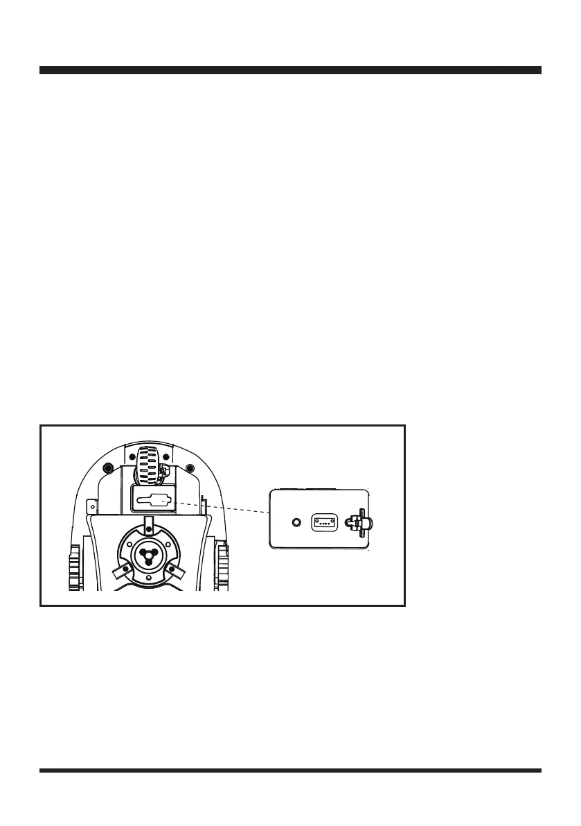 3. Turn the mower upside-down. Wear protective gloves and open the USB port rubber cap to reveal