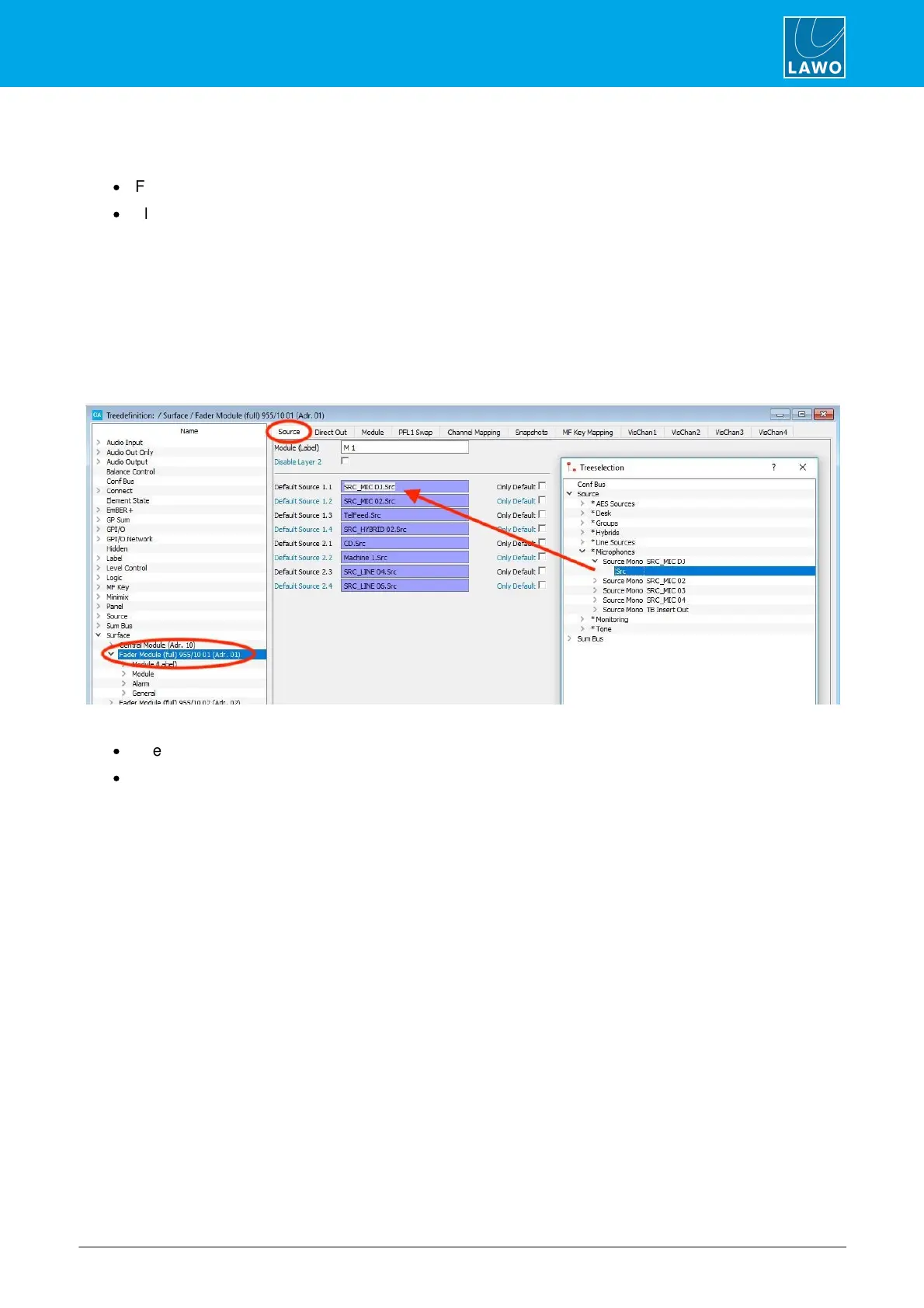 3. Repeat to assign a default source to each fader strip on the module: