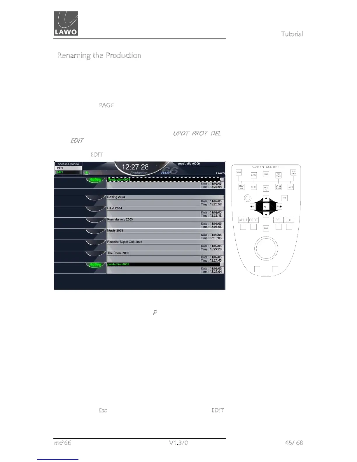 To rename the production: