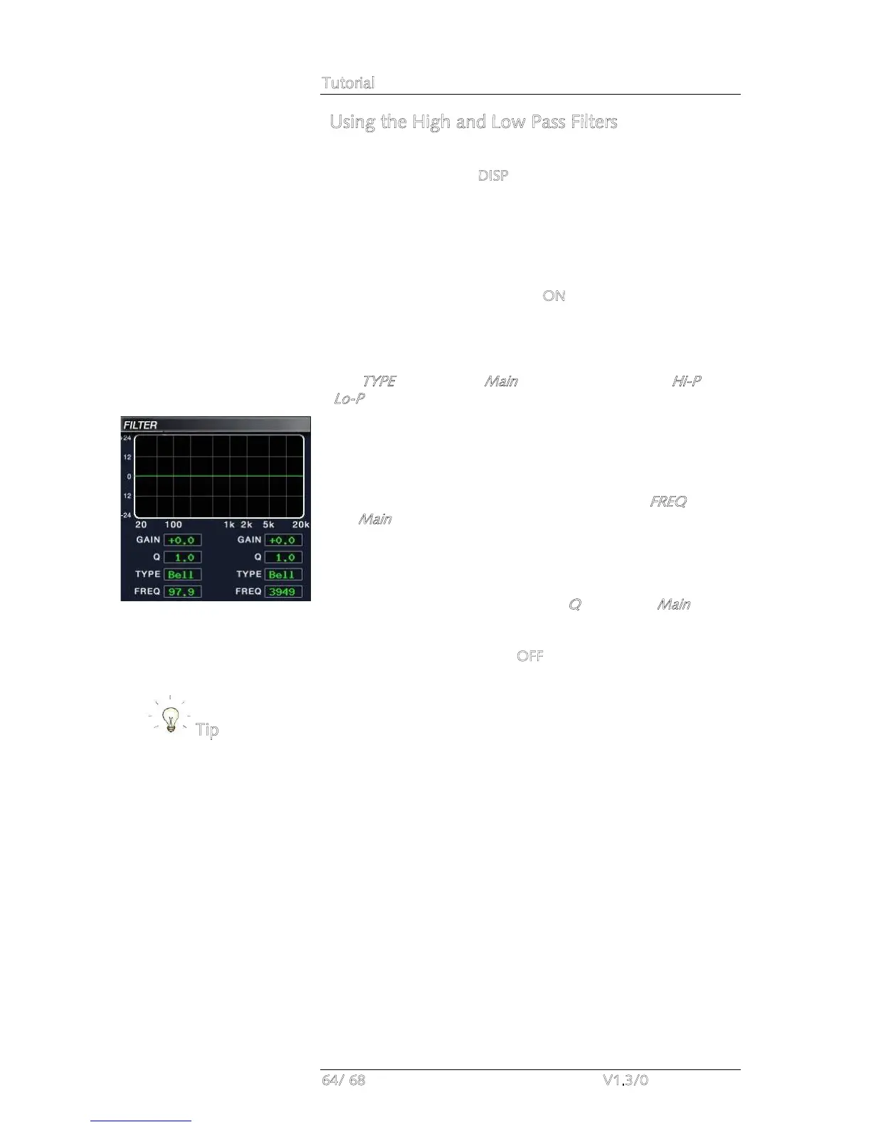 GAIN, FREQ and Q controls to the 2-band filter section.