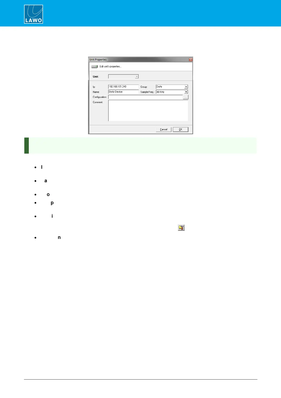 Ip - enter the IP address of the Lawo control system. This must be entered correctly, otherwise network