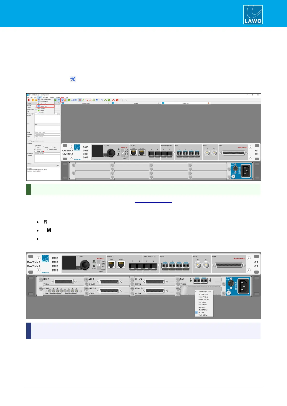 Double-click on the text RAVENNA, DMS or GT to open parameter windows for:
