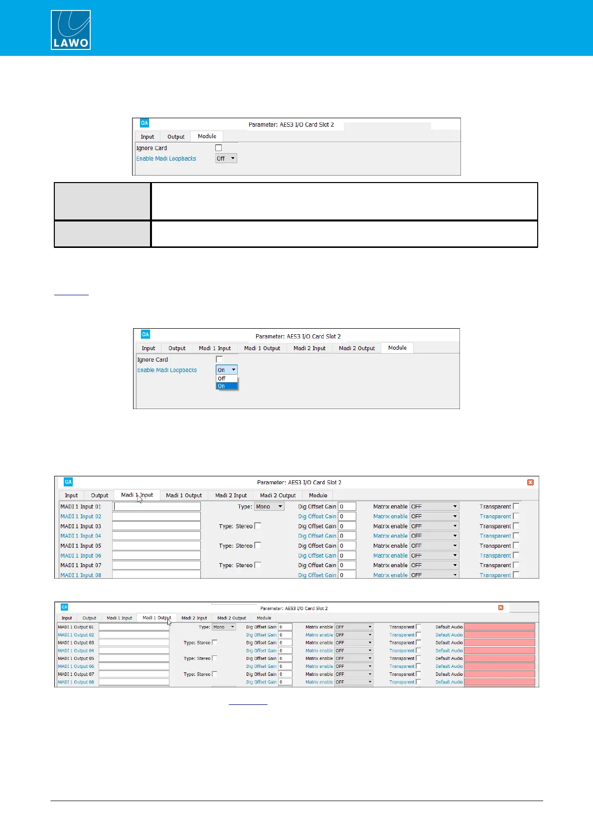 The parameters are the same as for a MADI IO card. The audio source for each loopback is defined by the
