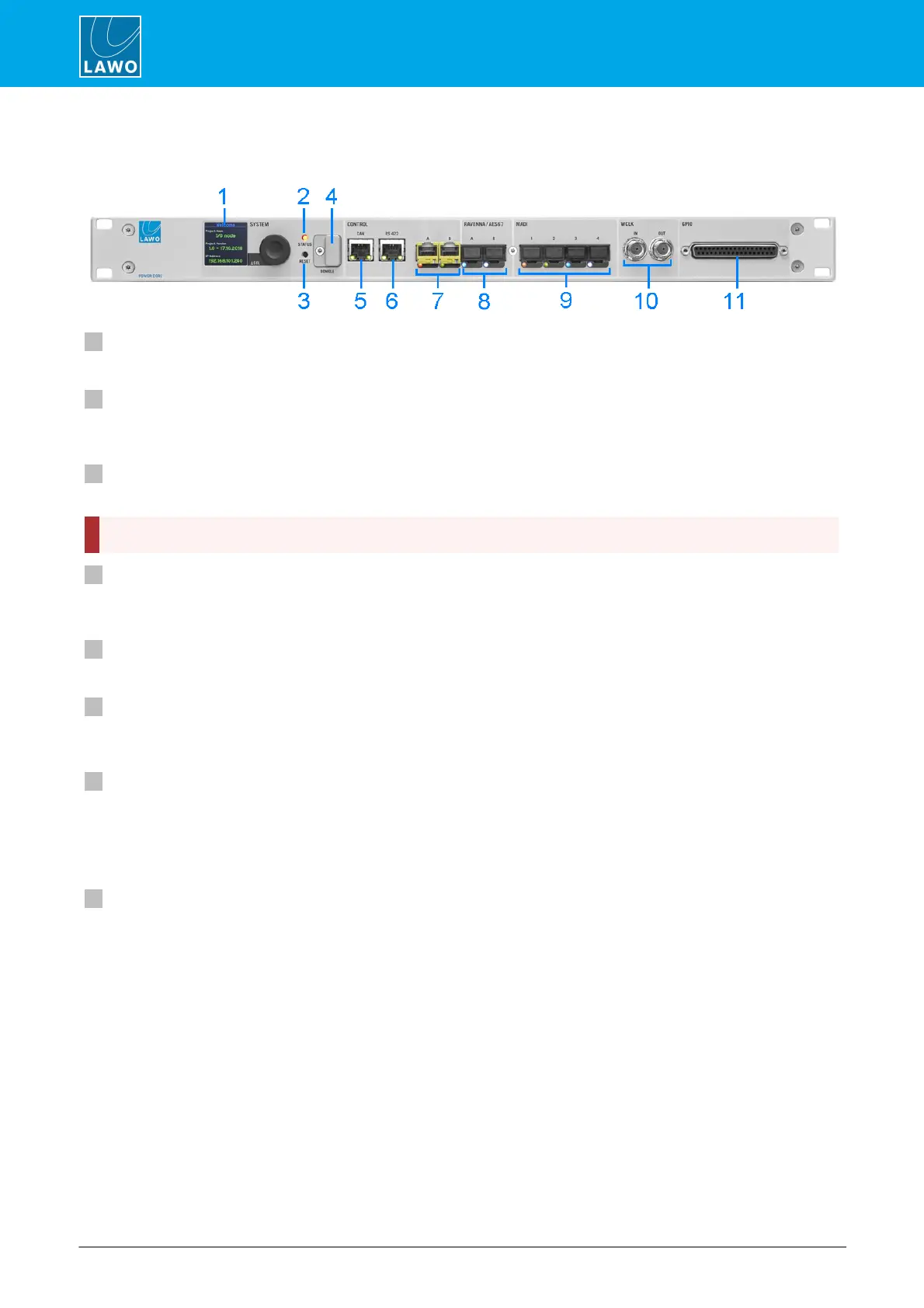 The two RAVENNA/AES67 interfaces stream audio to and from an IP network.