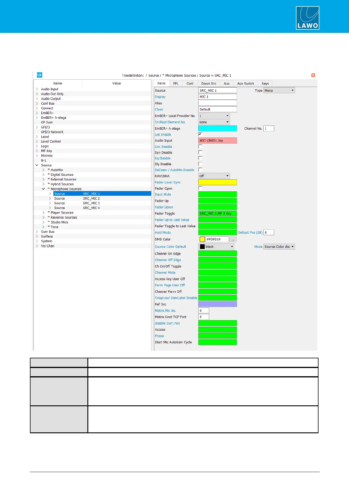 Select the source you wish to edit in the 'Tree Definition' and open the Parm tab to access its main parameters:
