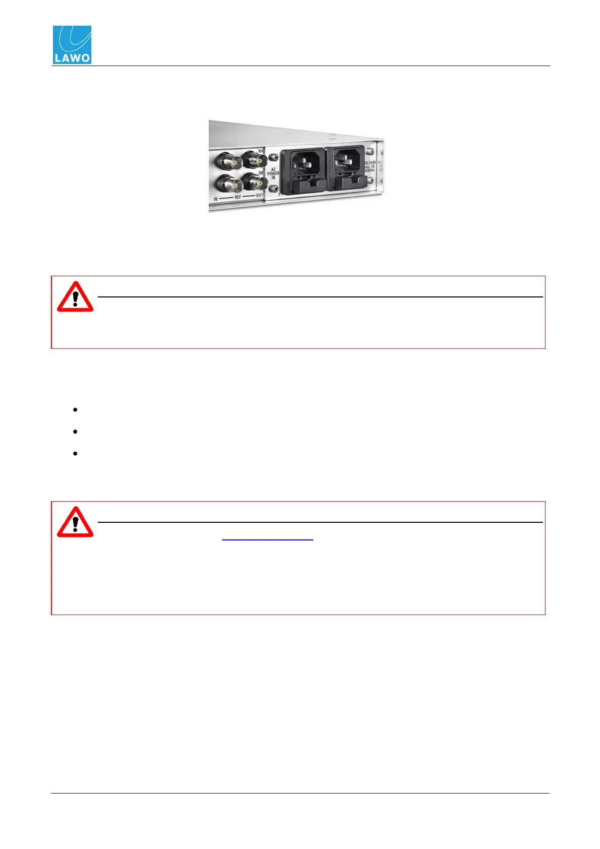 separate AC mains circuit. This will ensure continued operation if one of the mains circuits fails.