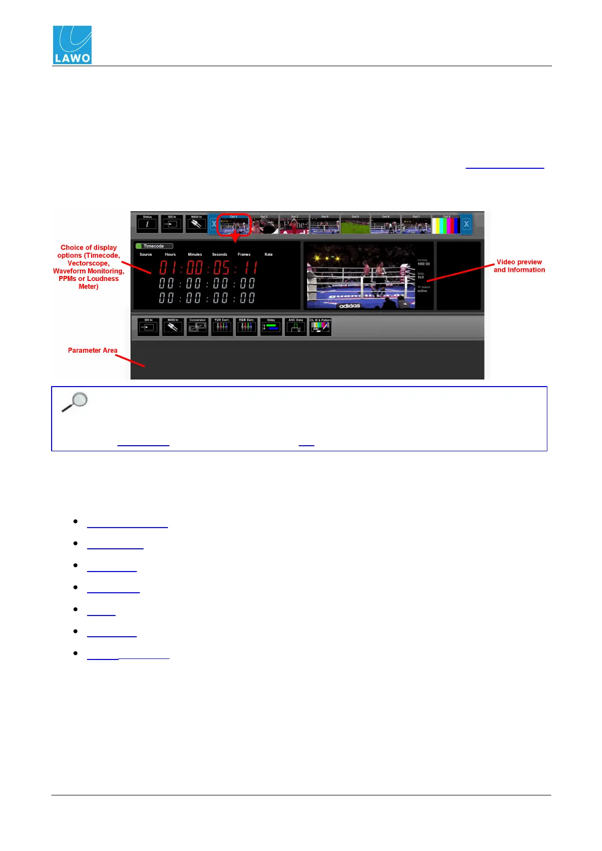 This main menu is the principle menu for dealing with SDI signals. Here you can monitor the video