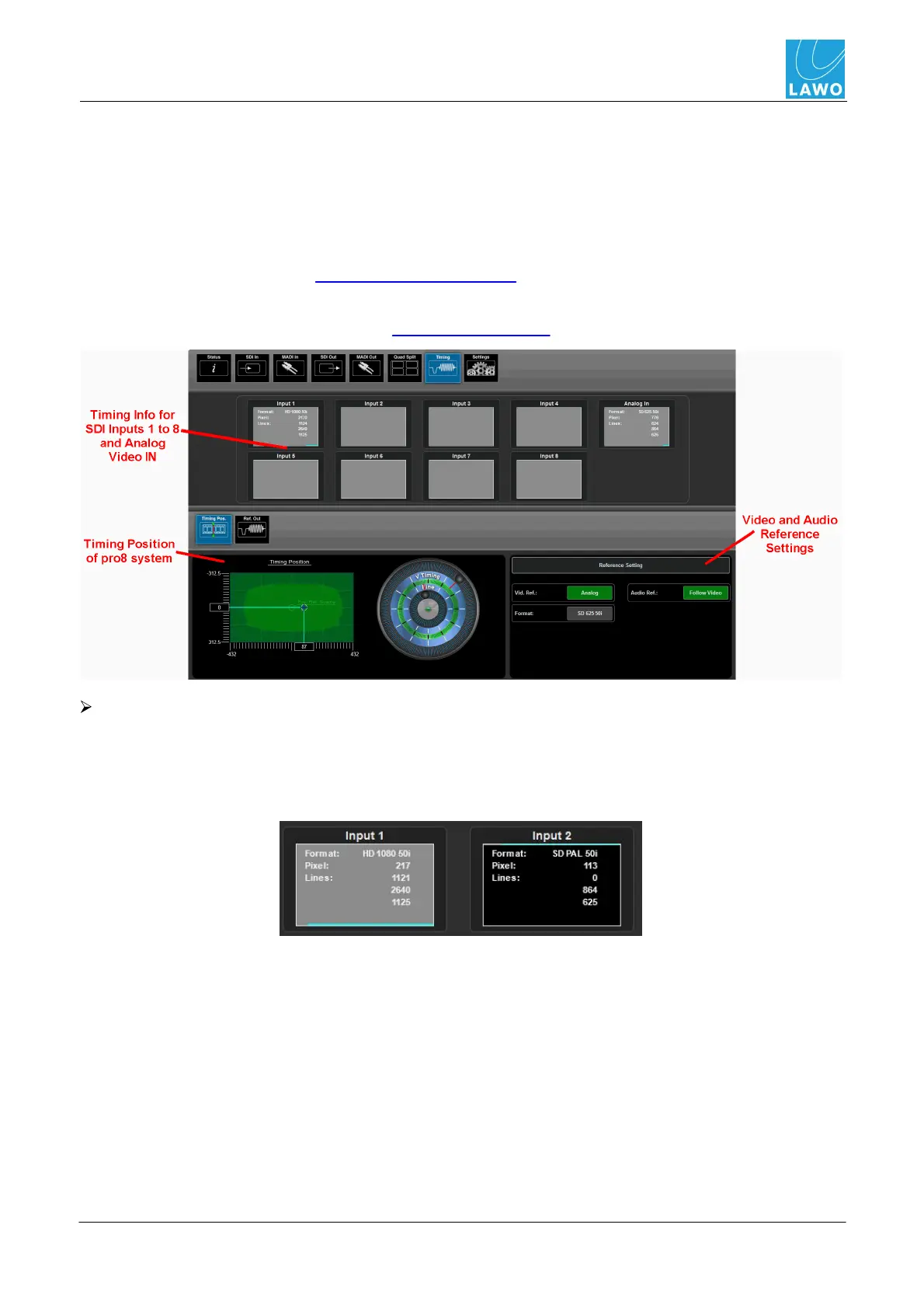 In the upper part of the operating window you will see timing information for all 8 SDI inputs - Input 1