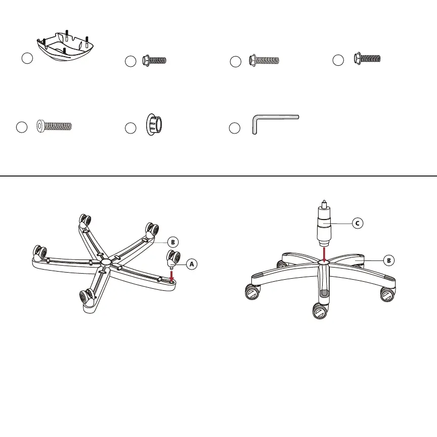hacia arriba y inserte las 5 ruedas (A) en los hoyos